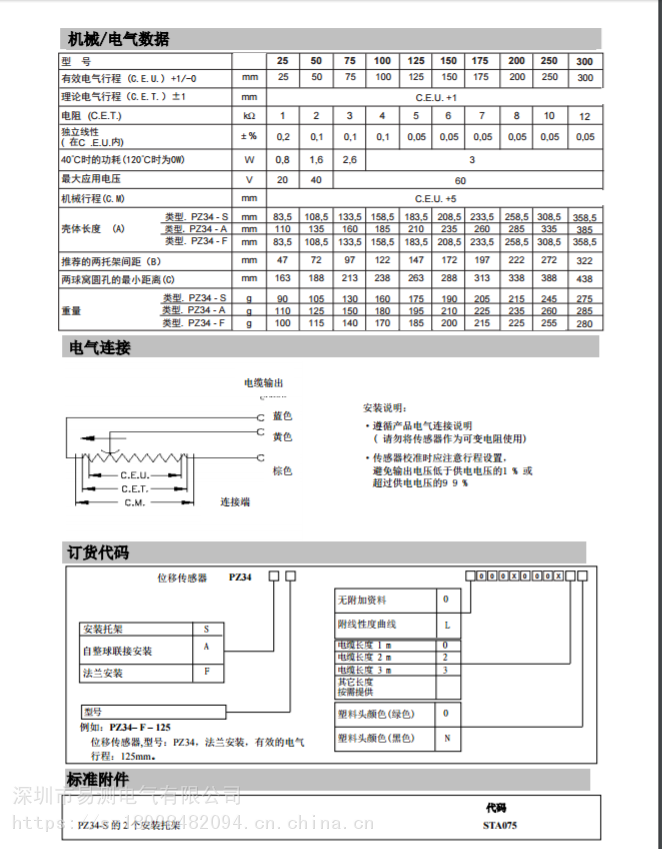 PZ34系列直線位移傳感器
